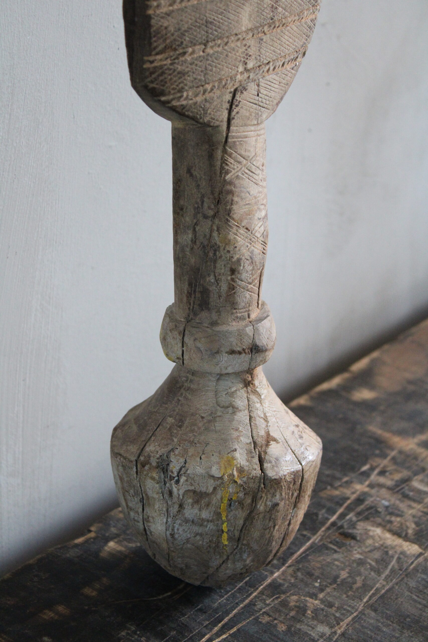 Lengte 100 cm Breedte 15 cm Vergrijsd verweerd hout, kijk eens naar die mooie details, uniek en met de hand gemaakt, uit Marokko, dit werd gebruikt bij het maken van kleden.